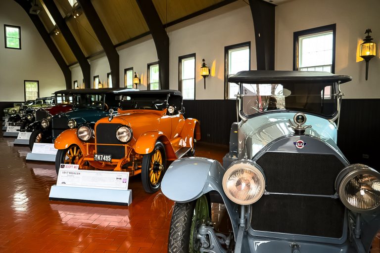 The Gilmore Car Museum is an automobile museum that exhibits over 400 vintage and collector vehicles and motorcycles from all eras in several vintage buildings located on a 90-acre campus.