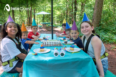 Turn your birthday into a treetop adventure at Treetop Quest Atlanta! Party guests climb and zip through up to four levels of aerial challenges then relax in a reserved picnic area. Perfect for kids, teens, adults who love action, teamwork and fun in the great outdoors.
