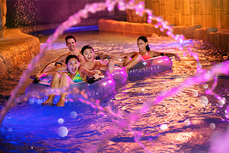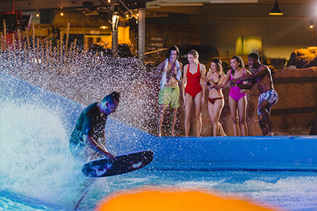 Aquatopia Indoor Waterpark at Camelback Resort is the Northeast’s premier year-round waterpark destination. Always 84 degrees and under a climate-controlled, transparent roof, Aquatopia features 13 thrilling water slides, a wave pool, adventure river, and multi-level play structures. Beyond the water, guests can enjoy indoor attractions like laser tag, a ropes course, arcade games, and bumper cars.