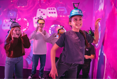 Immersive Gamebox school field trips combine interactive fun with STEM education for school groups of all ages. Home to 10 interactive Gameboxes, it combines motion tracking, touch screens, and projection mapping to create engaging group adventures. Aligned to middle and high school standards, students explore tech like Lidar, tracking cameras, and touch screens while working together in motion-tracked game rooms. Ideal for school groups, our field trips promote critical thinking, teamwork, and real-world learning.